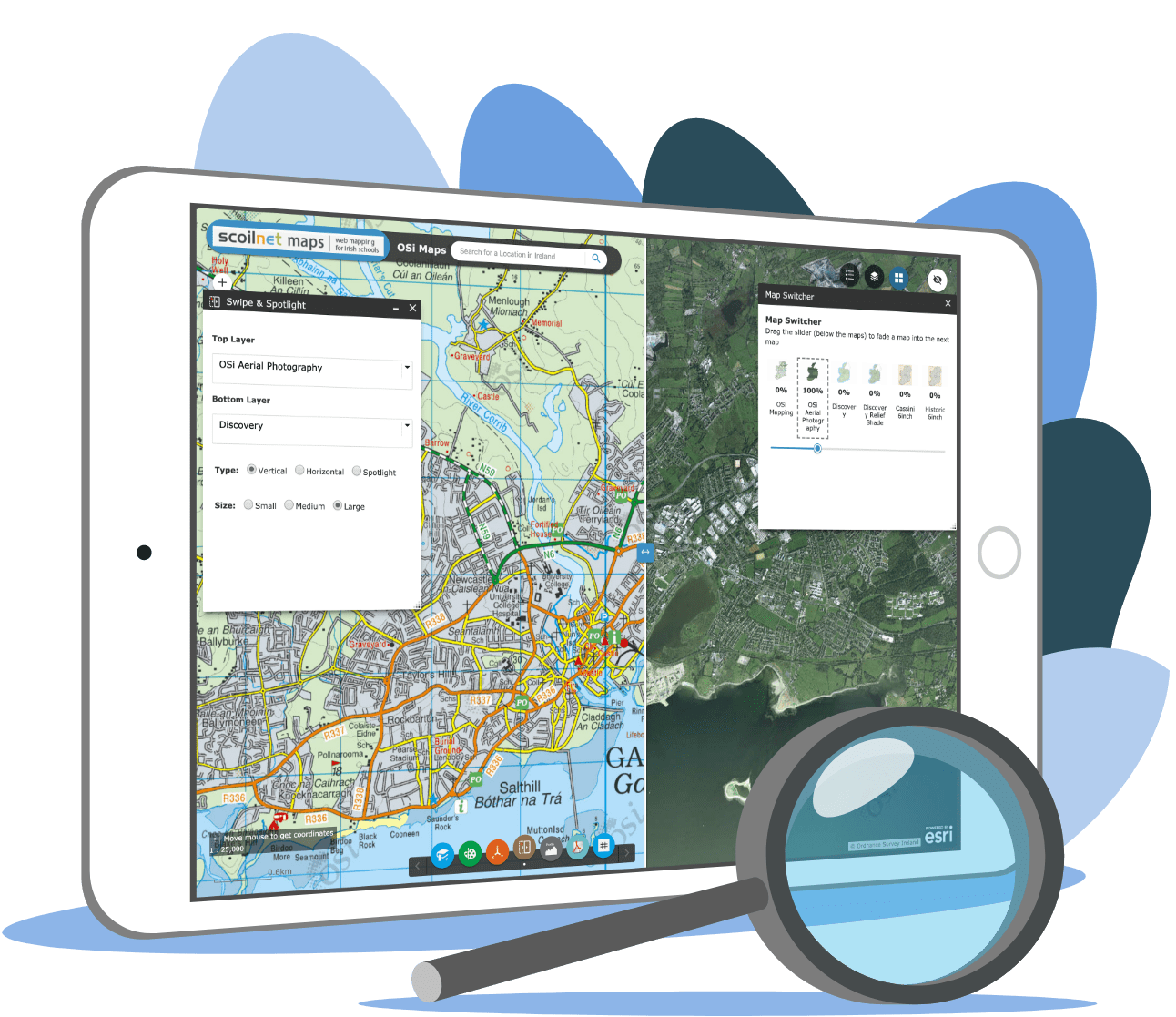Tailte Éireann large scale maps, aerial photography, historic maps and Discovery series maps for the Republic of Ireland. Viewable in all schools on the Schools Broadband Network. Log-in required from non-school locations.